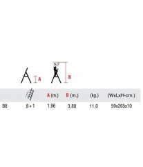 ESCABEAU 8 MARCHES ALUMINIUM 3.8 METRES