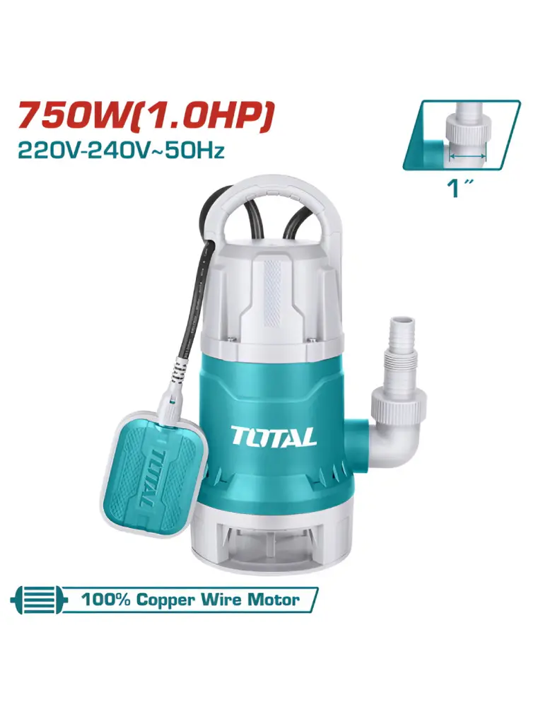 La POMPE SUBMERSIBLE 750W TWP87506 est spécialement conçue pour le pompage d’eaux sales ou chargées. Compacte, puissante et fiable, elle assure un débit élevé de 217 litres/minute, avec une hauteur de refoulement maximale de 8 mètres. Équipée d’un flotteur automatique, d’un câble de 9 m et d’un moteur en cuivre, elle est parfaitement adaptée pour vider des fosses, bassins, caves inondées ou chantiers.